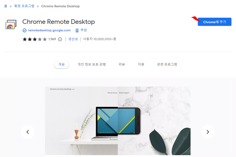 우선 Chrome 웹스토어에서 크롬 리모트 데스크톱을 설치합니다. 아래 링크에서 설치하세요.